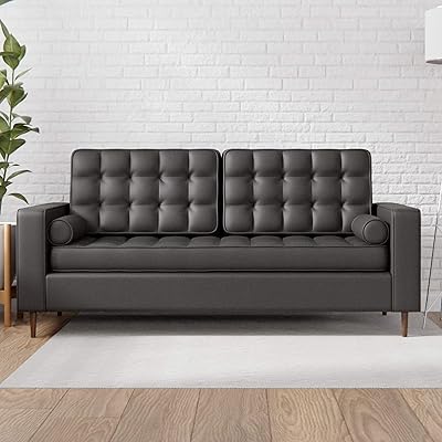 With a modern twist to a traditional chesterfield look, this sofa features stylish square arms. Our sofa is generously upholstered, giving any room a refined appearance. Upholstered in soft, plush leather, the sofa features rolled arms and elegant button tufting. W95.7 x d38.5 x h30.7 frame height: $40 off your qualifying first order of $250+1 with a wayfair credit card.